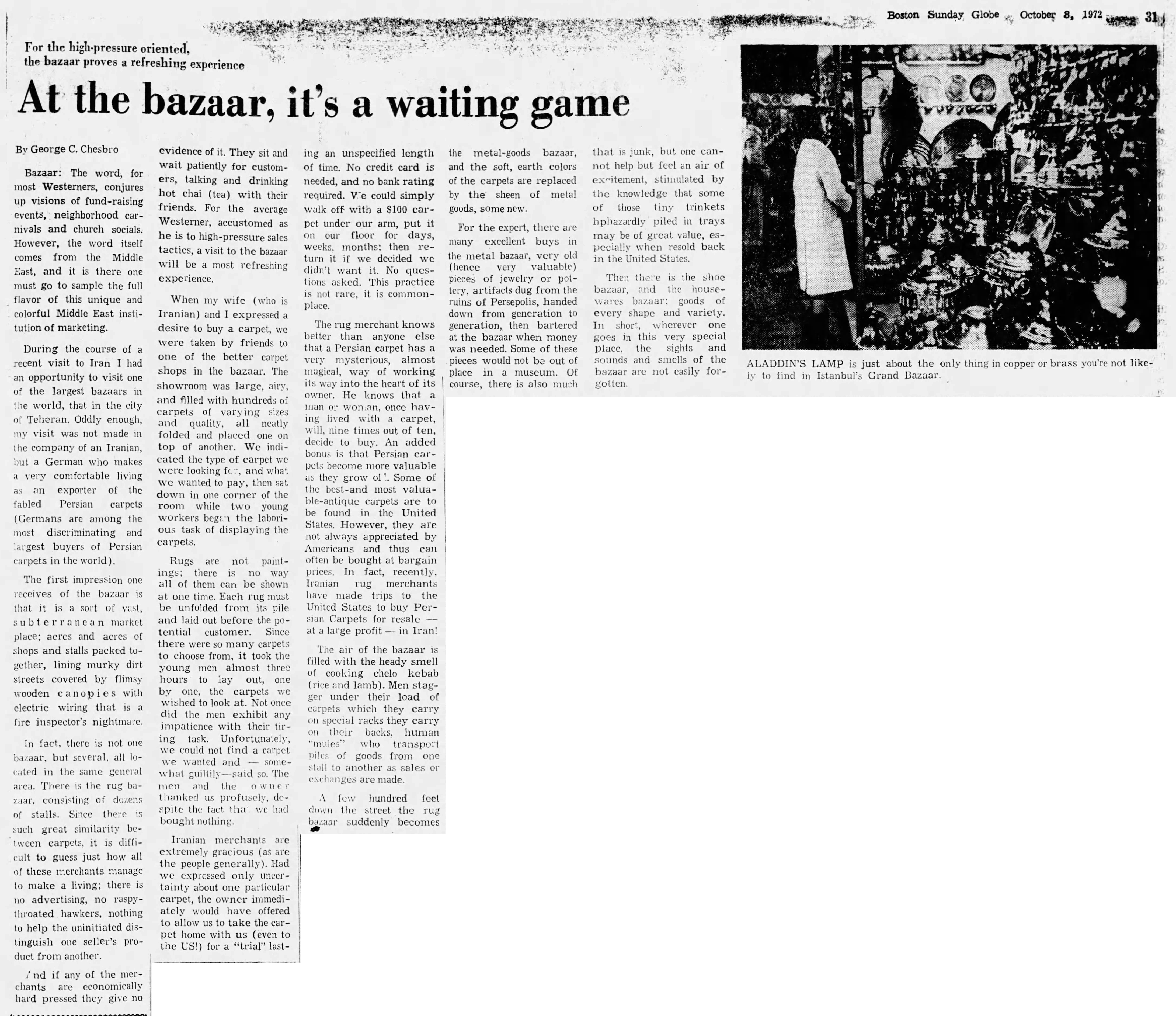 When my wife (who is Iranian) and I expressed a desire to buy a carpet, we